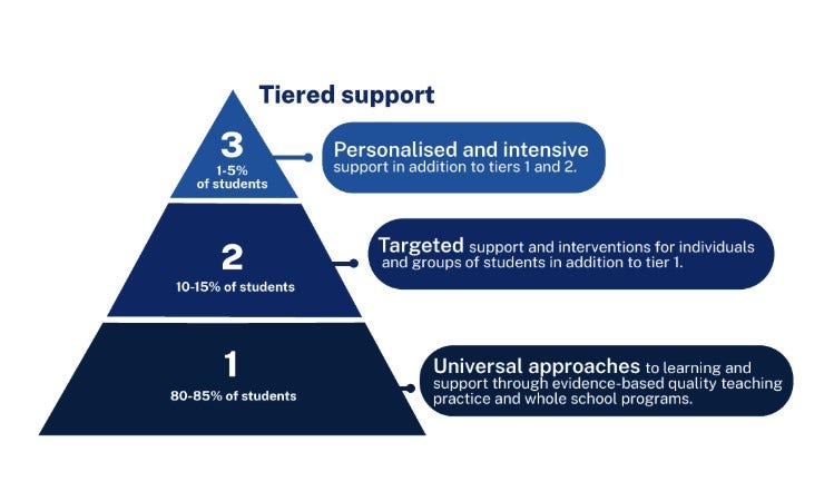 Our school implements the multi-tiered system of supports (MTSS) to provide relevant adjustments and evidence-based interventions to ensure all students are supported at their point of need. We offer a range of initiatives and interventions, grounded in research, at each tier of support.